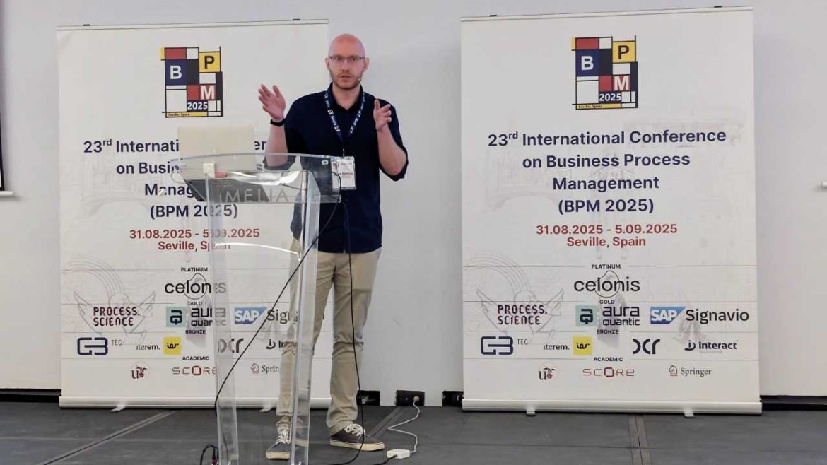 Erfolgreich konnte er seine Publikation im Hauptprogramm der International Conference on Business Process Management (BPM) in Sevilla präsentieren. Als weltweit führende Konfernz in diesem Bereich, bringt sie jährlich international nahmhafte Experten aus Forschung und Praxis zusammen. Eine Aufnahme in das Hauptprogramm der Konferenz gilt als bedeutende Anerkennung der wissenschaftlichen Qualität und Relevanz der präsentierten Forschungsarbeit.